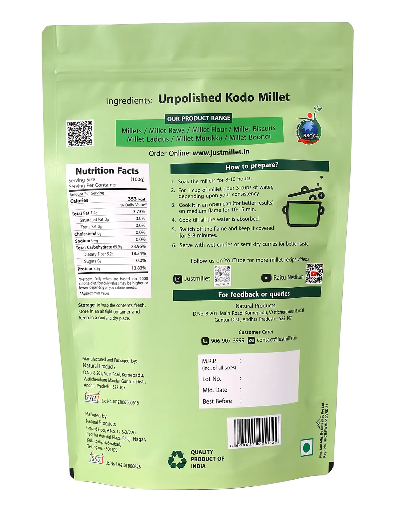 Discover the goodness of Kodo Millet, a nutritious and gluten-free ancient grain that is packed with essential nutrients. Kodo Millet is known for its high fiber content, making it a healthy choice for those looking to add more fiber to their diet. This versatile grain can be used in various dishes, from savory porridges to fluffy pilafs.