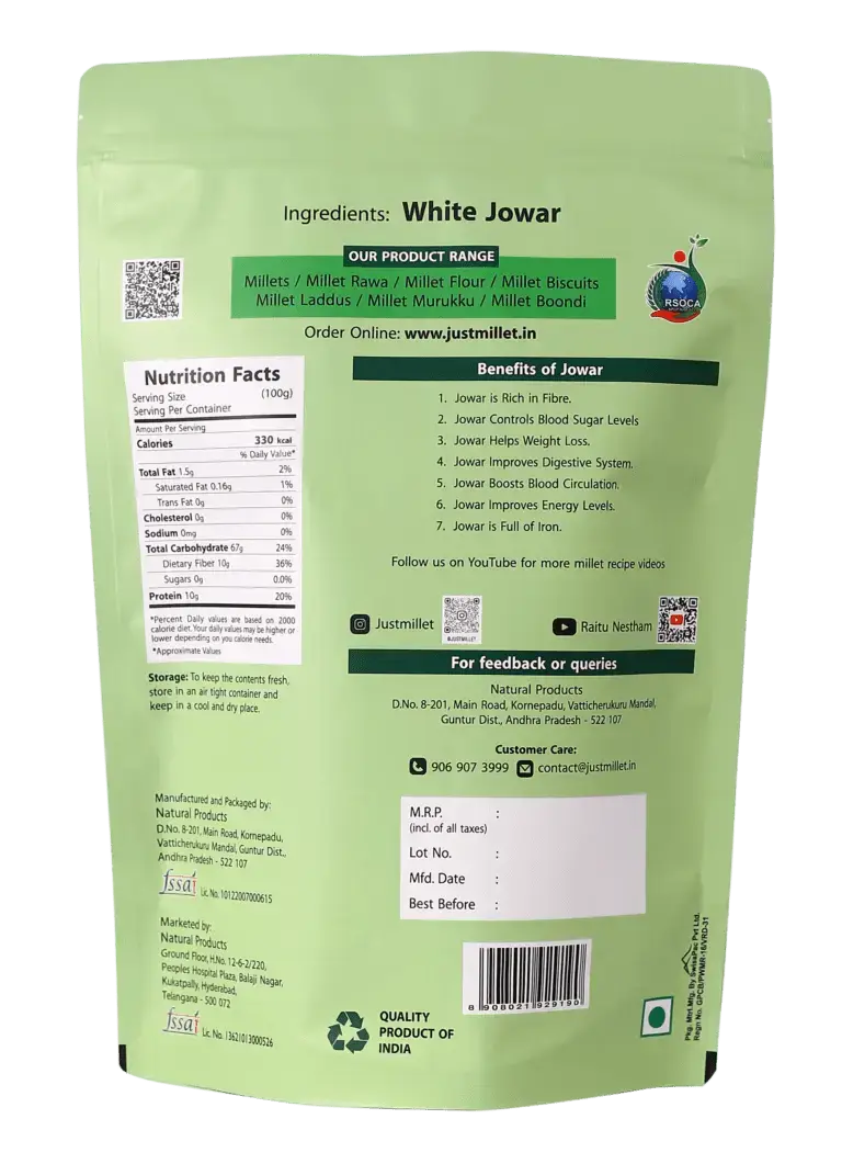 Experience the purity and nutritional richness of White Jowar, a versatile and gluten-free ancient grain that is a powerhouse of essential nutrients. White Jowar, also known as Sorghum, is celebrated for its mild flavor, chewy texture, and numerous health benefits. This wholesome grain is a popular choice for those looking to enhance their diet with a nutrient-dense and flavorful alternative.