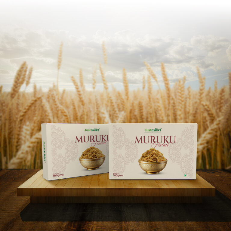Enjoy the nostalgic crunch of murukku with a healthy upgrade! Our Foxtail Millet Murukku is made from nutritious foxtail millet flour and a mix of traditional spices, delivering a light, crispy texture with wholesome goodness. Whether enjoyed with tea or as a snack on the go, this savory spiral offers the perfect balance of taste, tradition, and nutrition—with no maida or artificial additives.